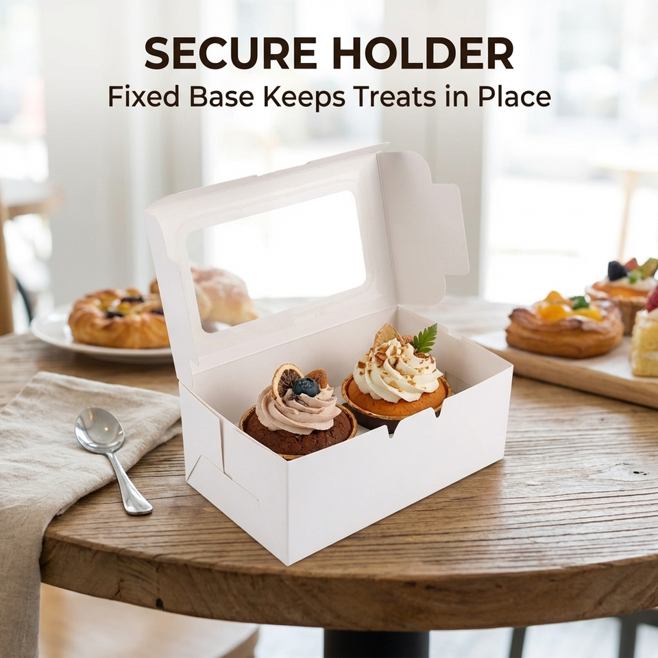 Cajas de Papel para Cupcakes con 2 Orificios y Ventana Transparente, Caja de Embalaje para Pasteles y Postres, para Fiestas de Cumpleaños, Suministros de Panadería