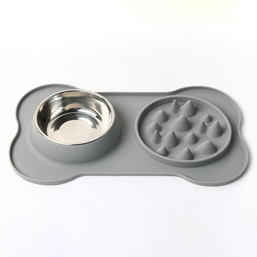 Alfombra elevada 2 en 1 para alimentación lenta con tazón de acero inoxidable para mascotas