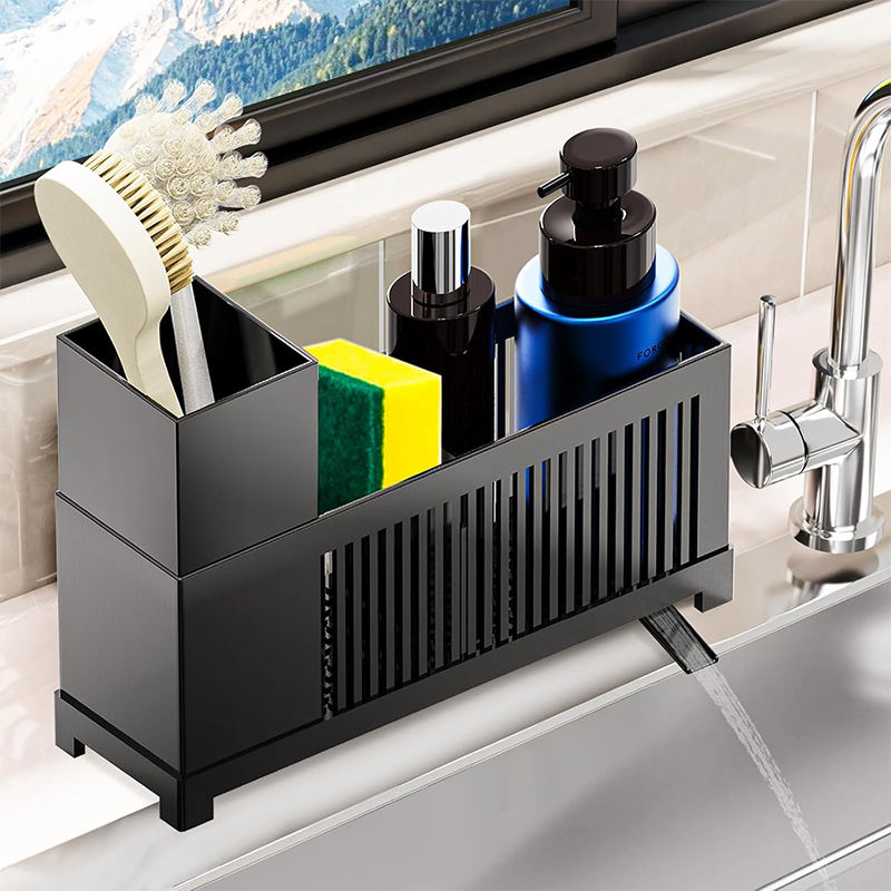 Uso:Fregadero Caddy esponja titular para cocina negro/fregadero