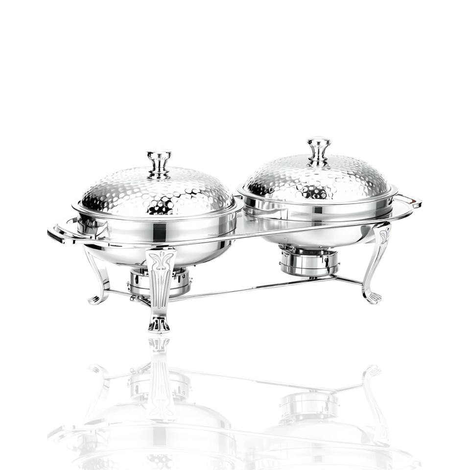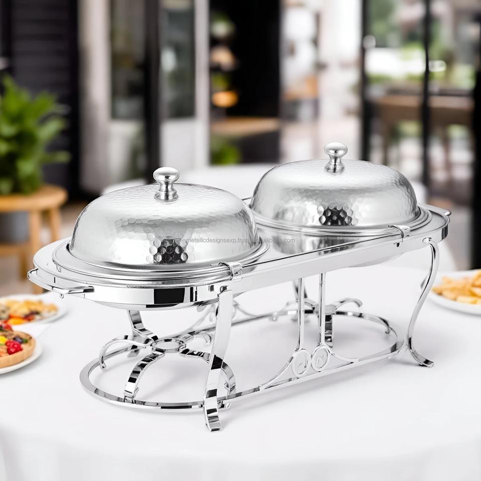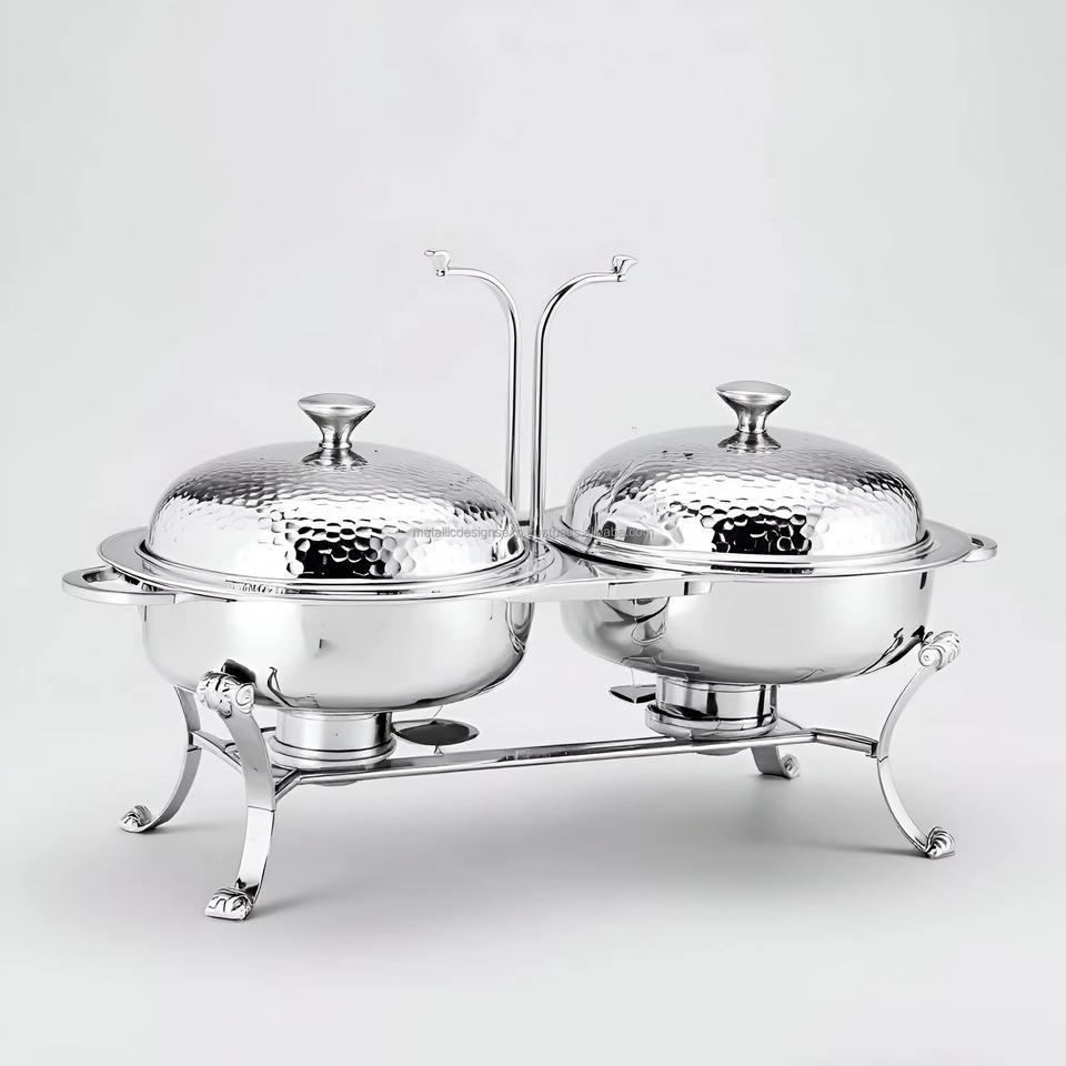 Cazuelas grandes con acabado plateado 2 en 1, perfectas para restaurantes, buffets, bodas y eventos de catering. Venta al por mayor desde India.