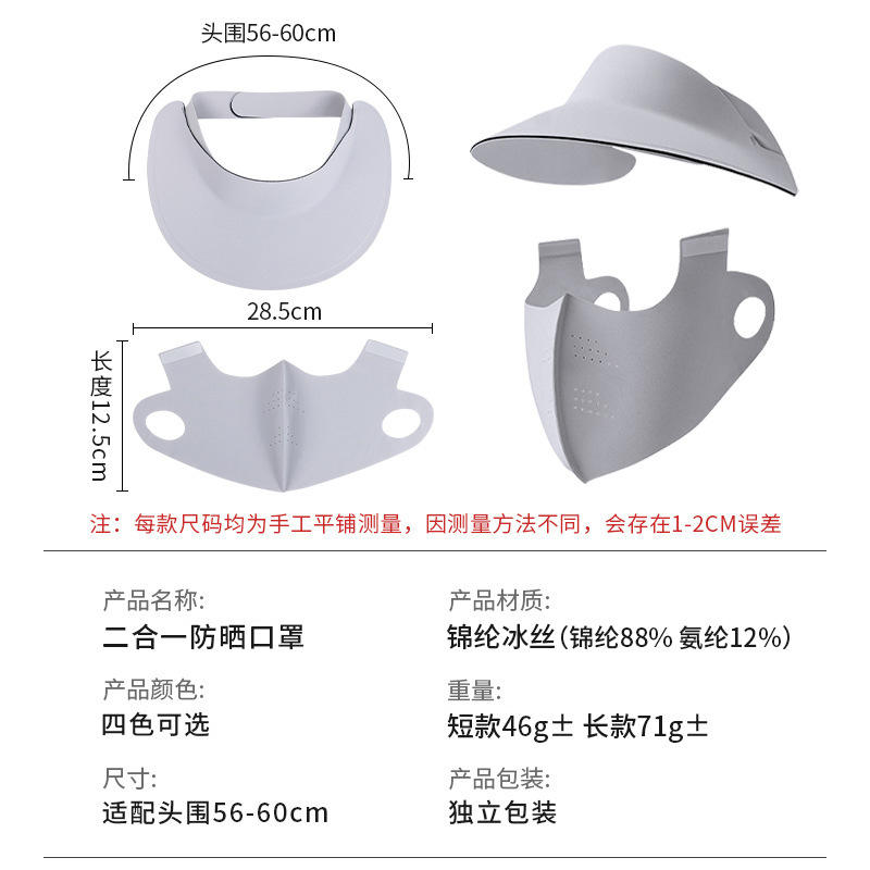 2-In-1 Sun Protection Mask Nylon Face Cover 56-60Cm Elastic Earloop Summer UV Shield Solid Color Eye Protection