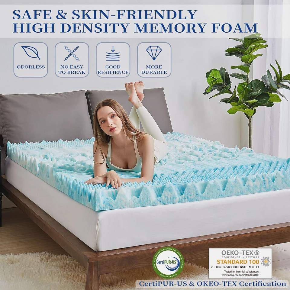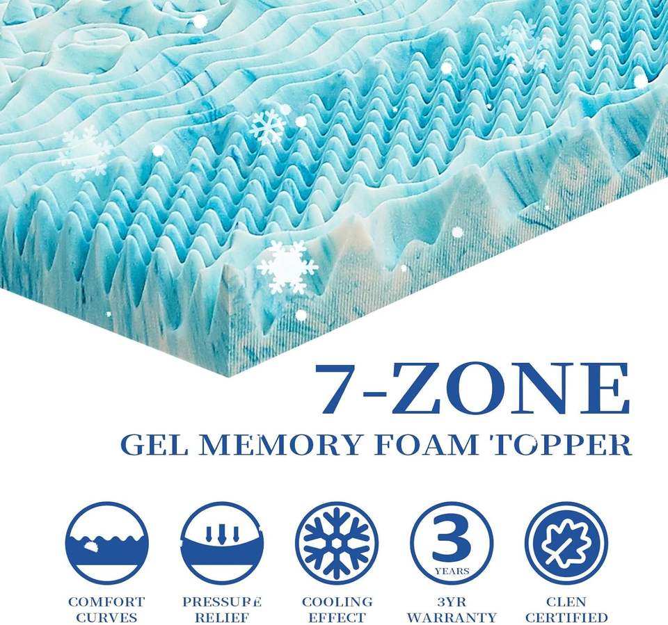 Cubrecolchón de Espuma Viscoelástica de 2 Pulgadas con 7 Zonas, Tamaño Matrimonial, con Gel Refrescante, Suave y Ergonómico