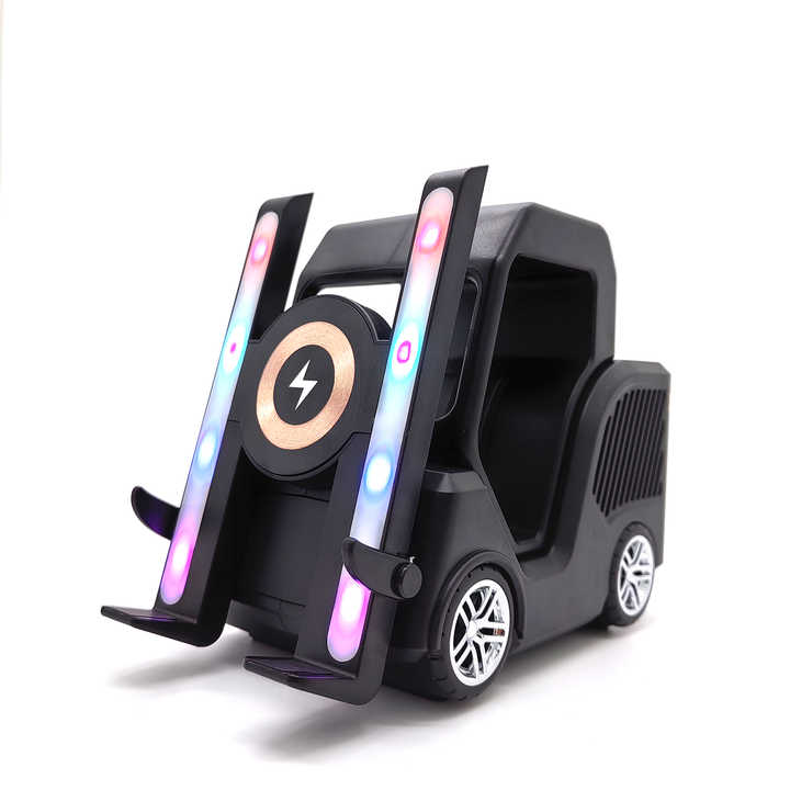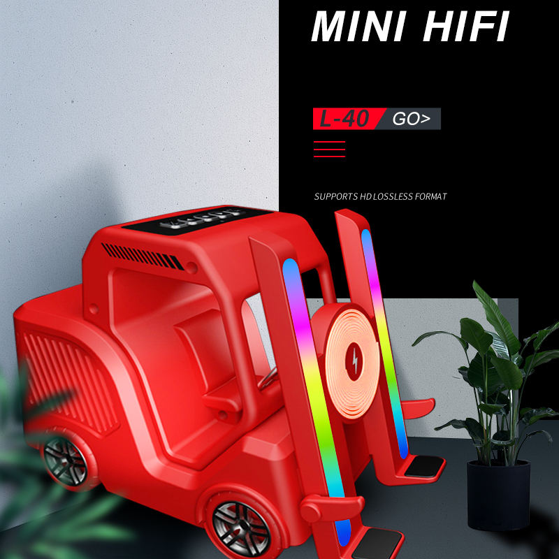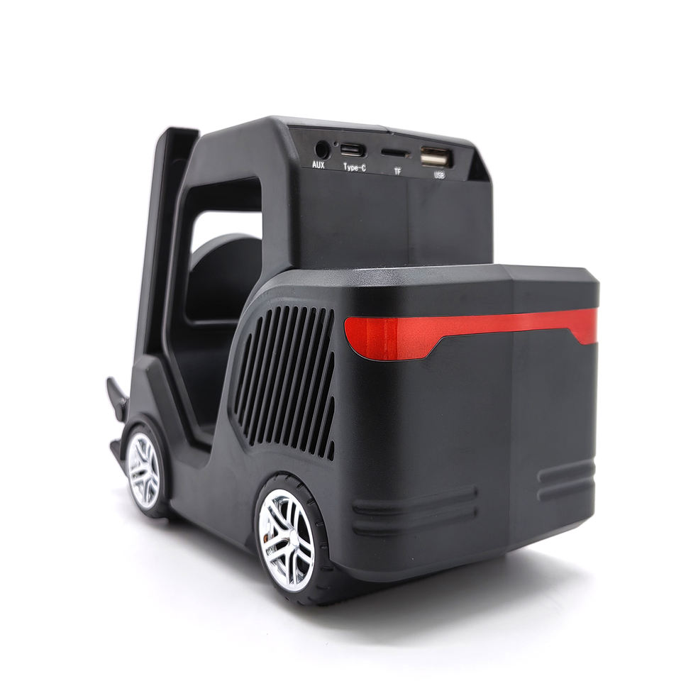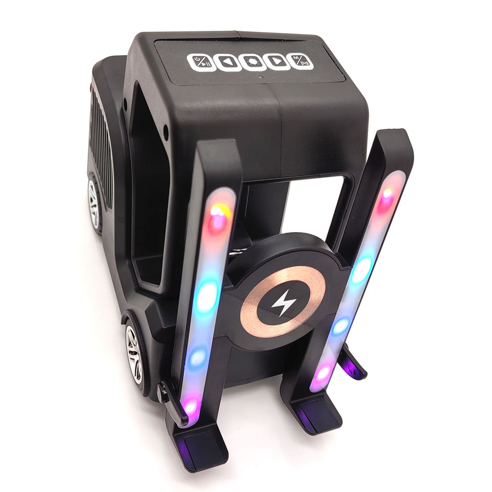 Altavoces bluetooth manos libres estilo carretilla elevadora de 2 pulgadas con cargador inalámbrico de luces RGB de graves profundos TWS para decoración de soporte de teléfono