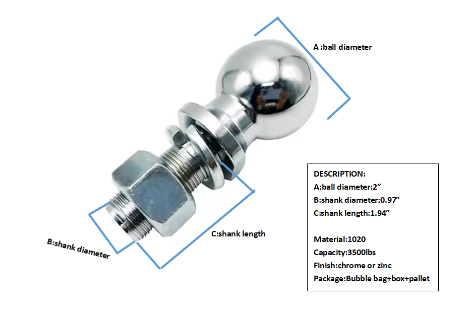 Bola de remolque de bola de enganche de alta calidad de 2 pulgadas para accesorios de piezas de remolque