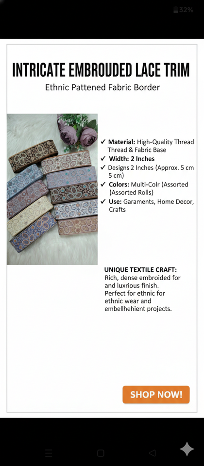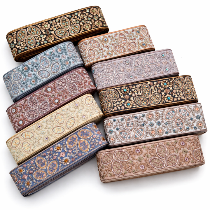 Cinta de encaje bordada floral multicolor de 2 pulgadas, ribete étnico indio con bordado de flores, para manualidades, costura y decoración de vestidos.