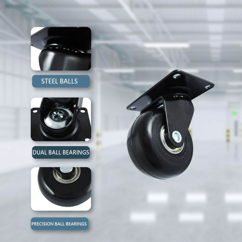 Rueda giratoria PU con placa superior Hoja de rodillo negro de 2 pulgadasNombre del producto