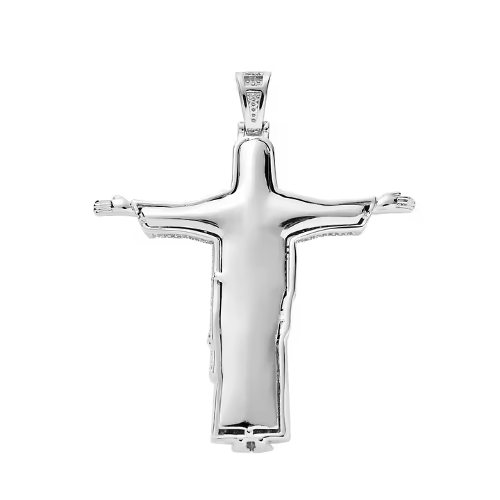 Colgante de Cruz de Jesús Chapado en plata de 2 pulgadas, corte llamativo, Diamante de moissanita ostentoso para bodas, fiestas, joyería religiosa helada