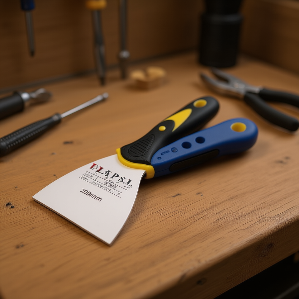 Espátula de Acero Inoxidable de 2 Pulgadas con Mango de Plástico Azul-Negro, Cuchillo Multiusos