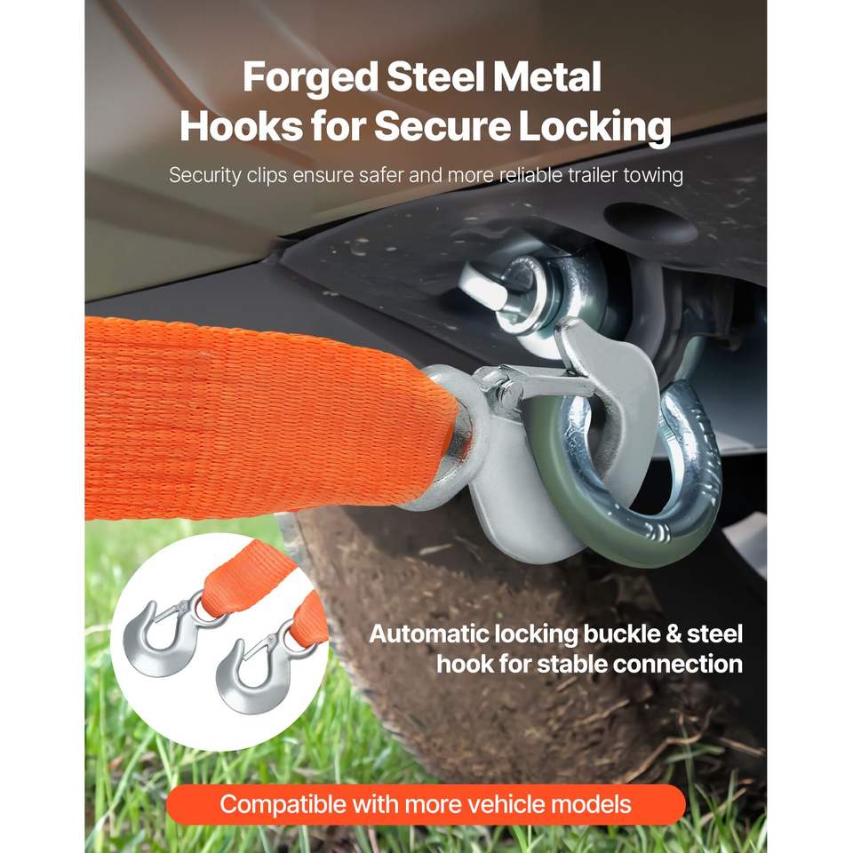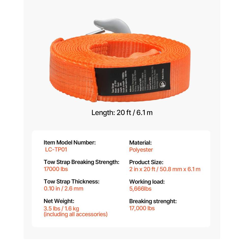 Correa de Remolque Resistente para ATV de 2 Pulgadas x 20 Pies con Ganchos de Seguridad, Capacidad de 17000 Libras para Recuperación de Camiones y Vehículos