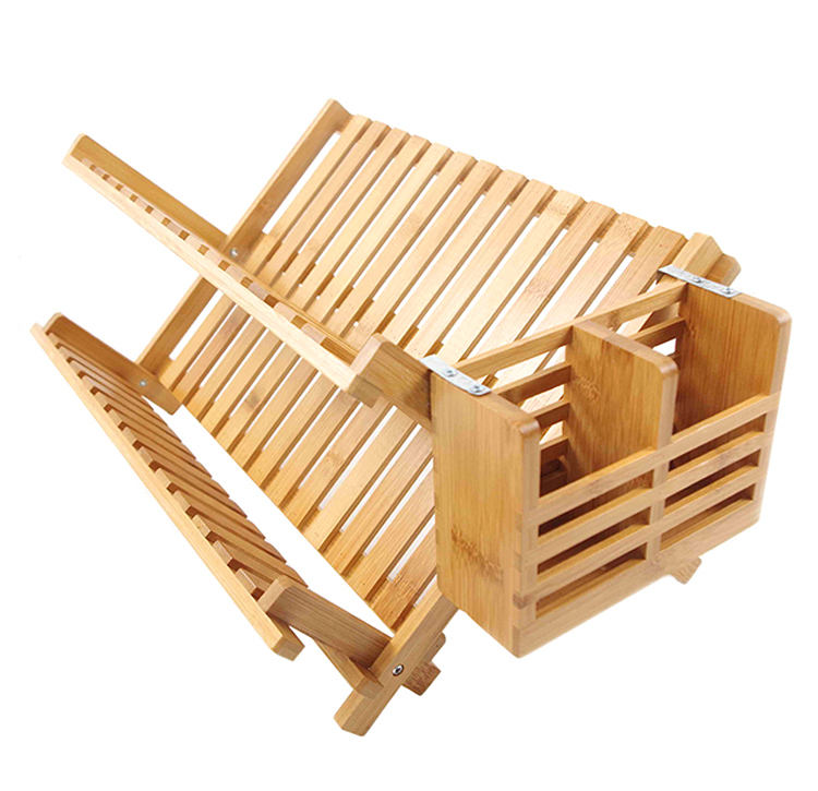 2 Nivel de Dish Rack plegable plato de secado Rack plegable plato escurridor placa de madera Rack