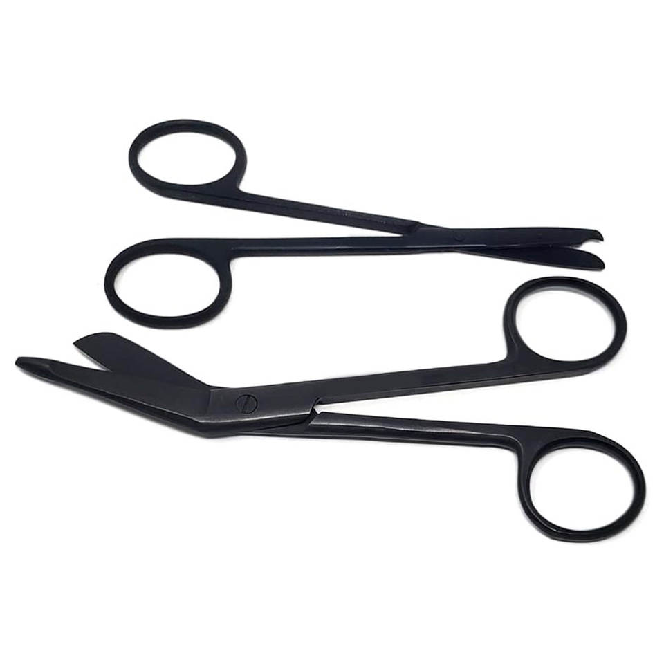 JACKBILLY 2 uds completo negro Acero inoxidable enfermera vendaje sutura puntada tijeras 5,5 \ "4,5 \" Manual de primeros auxilios con entrenamiento EMS