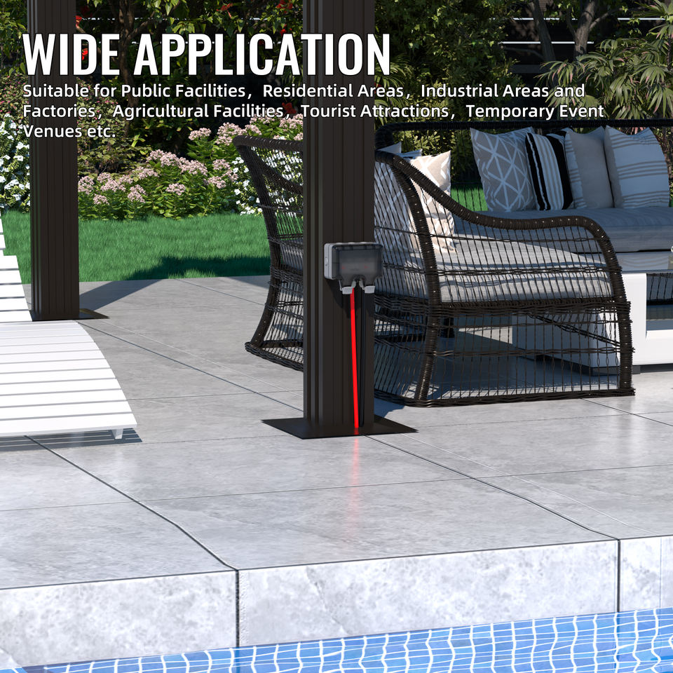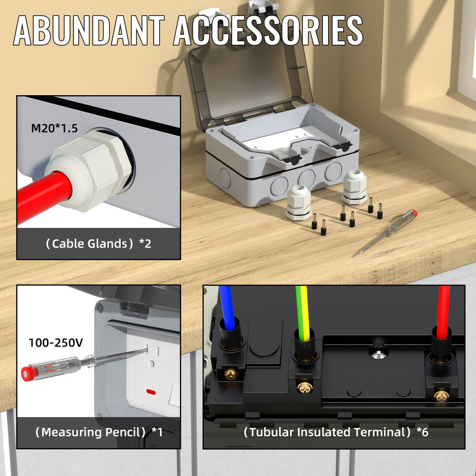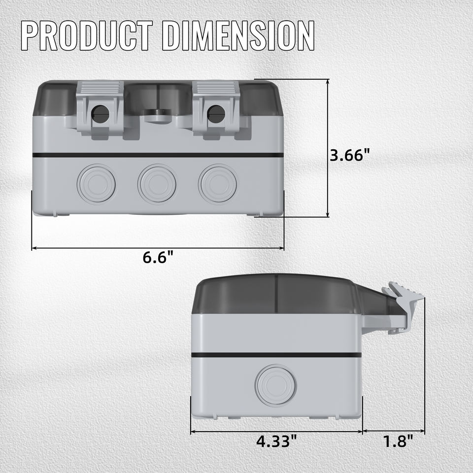 Caja de Tomacorrientes con 2 Tomas de 15A 250V, Bloqueable, con Cubierta de Plástico e Interruptor de Estrella para Uso Exterior