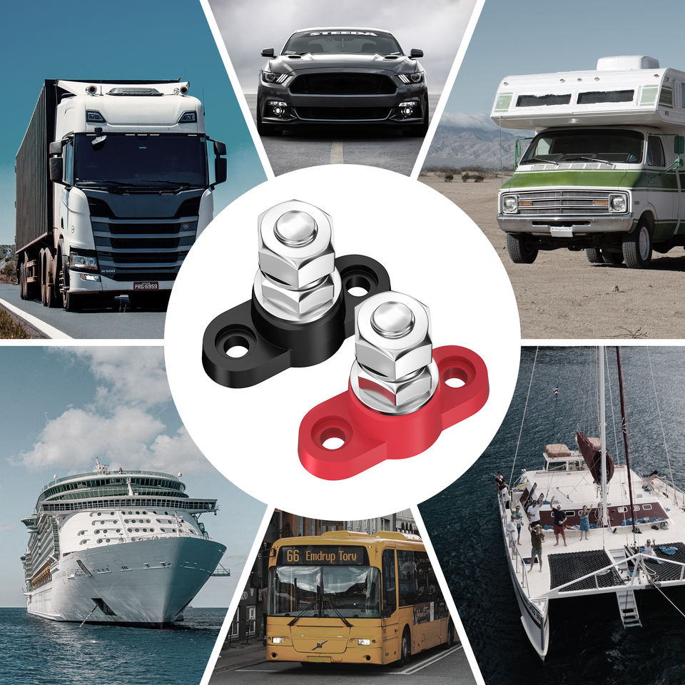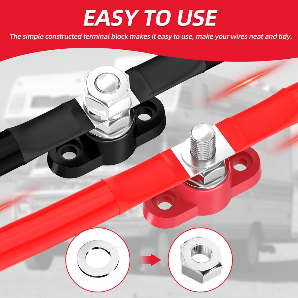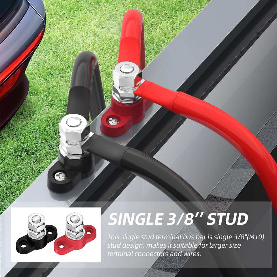 2 Piezas de Bloque de Distribución de Energía M10 de 12V, Bloque de Distribución de un Solo Terminal de 80A, Barras Colectoras Eléctricas de Cobre Puro Positivo y Negativo