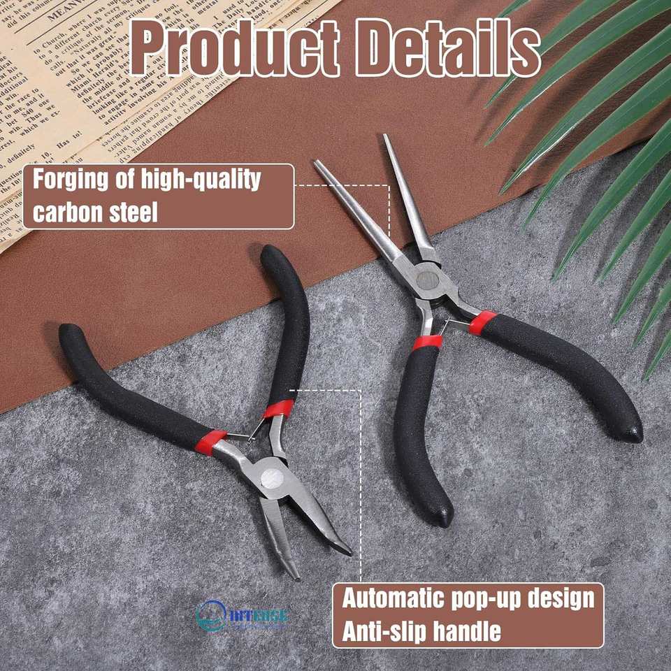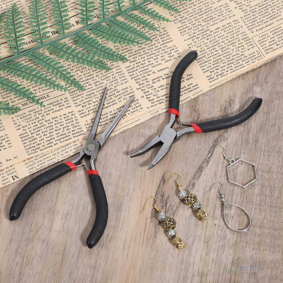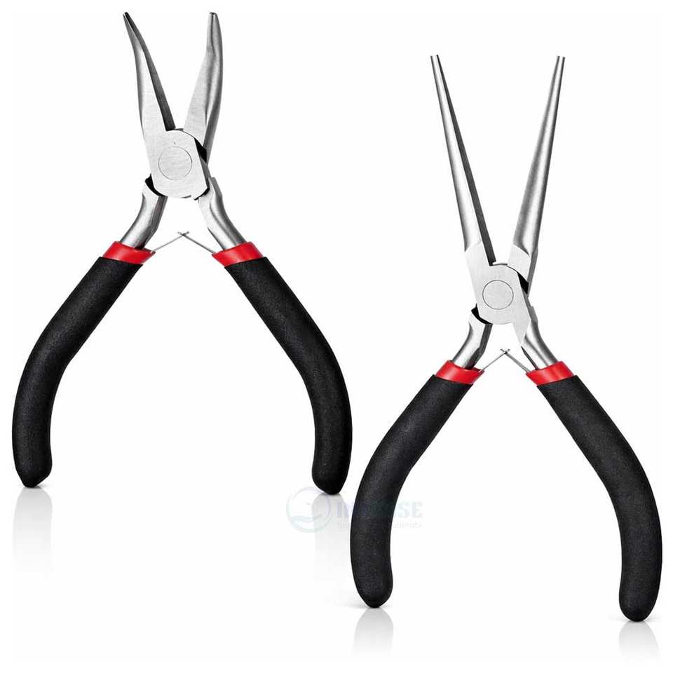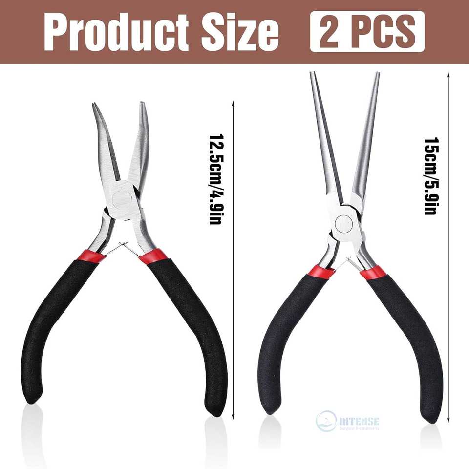 Juego de 2 Pinzas de Acero Inoxidable con Punta Pequeña, Mini Pinzas para Joyería, Punta Larga y Curva para Fabricación de Joyería, Reparación y Envoltura de Alambres
