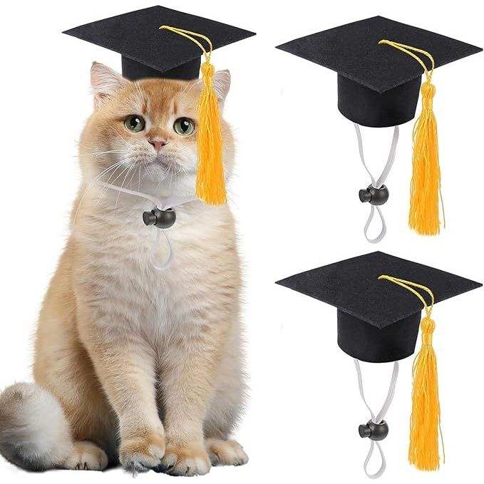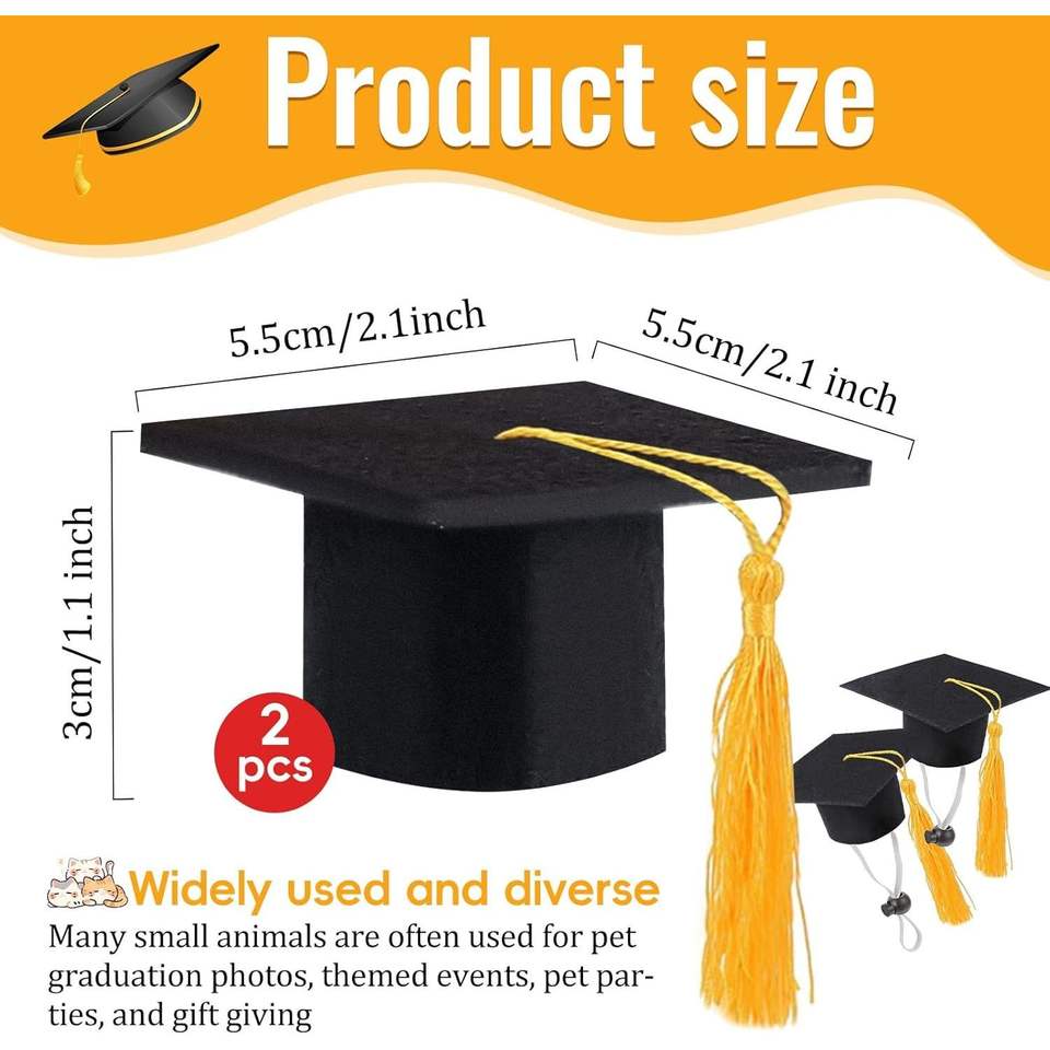 Paquete de 2 mini gorros de graduación ajustables con borlas amarillas, accesorios pequeños para fotos de animales, gatos, perros y mascotas
