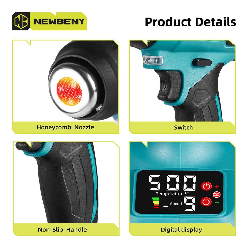 Paquete de 2 baterías de 2000W de potencia de velocidad del viento con pantalla Digital de temperatura pistola de calor máquina desnuda Makita pistola de aire caliente máquina de soldadura