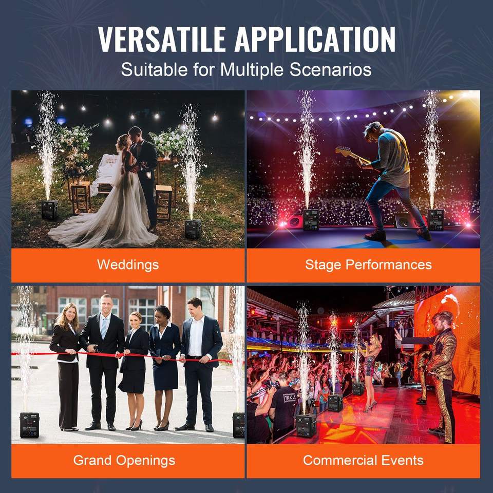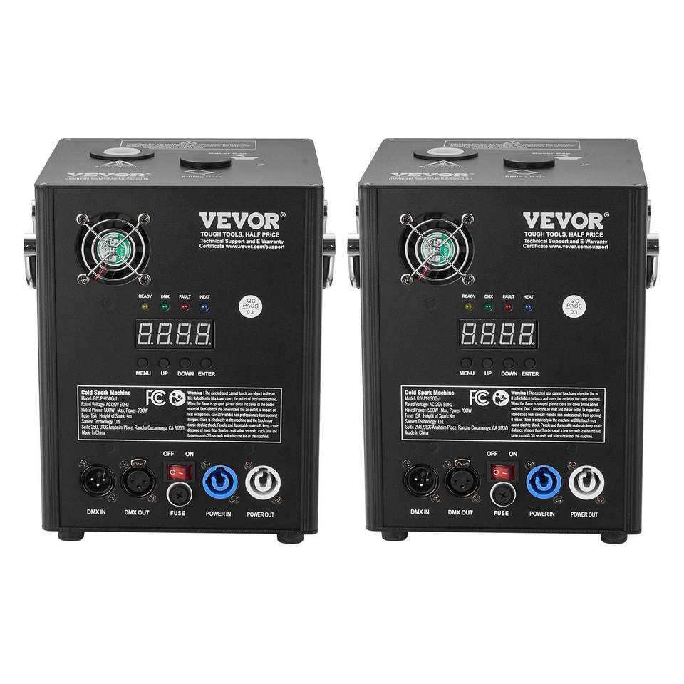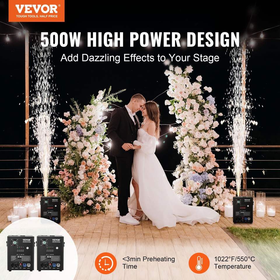 Paquete de 2 Máquinas de Chispas Frías de 500W con Controladores de Fuegos Artificiales, Altura Ajustable de 6.6-13 pies, Equipo de Iluminación de Escenario DMX Avanzado