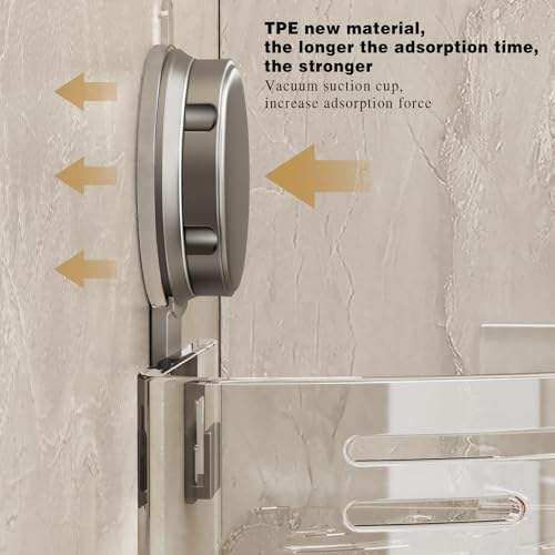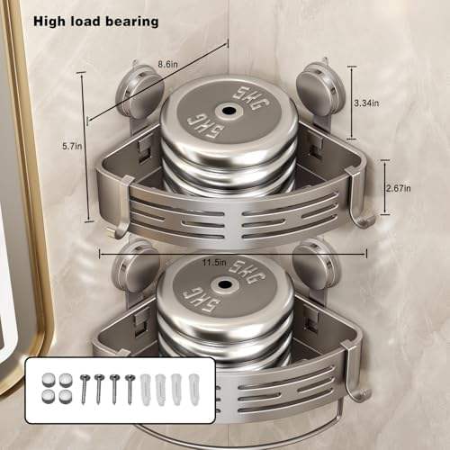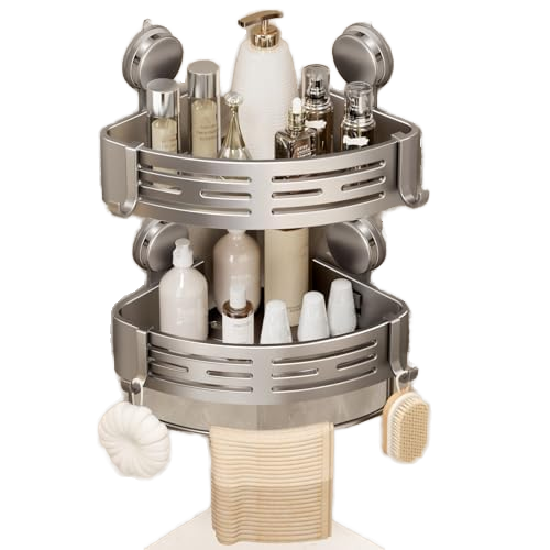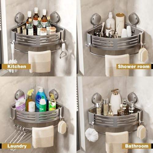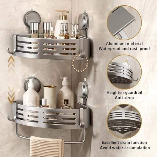 Paquete de 2 estantes de ducha de esquina gris, ventosa, estante de ducha sin perforación, organizador de baño, barra de toalla adhesiva, ganchos, rieles