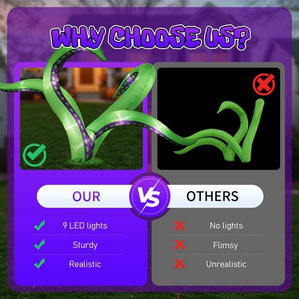 Paquete de 2 Tentáculos de Pulpo Inflables Colgantes de Halloween con Luces LED, Impresionantes Decoraciones para Jardín en Exteriores