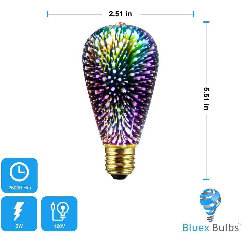 Paquete de 2 Bombillas LED ST19 con Efecto de Fuegos Artificiales 3D Infinito, 3W 120V, Luz de Fiesta Multicolor, Efecto Vitral