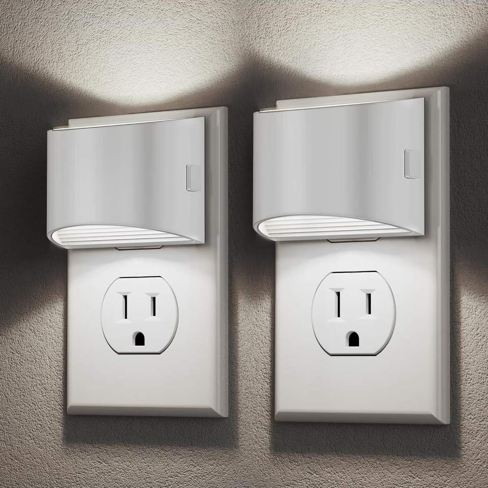 Paquete de 2 Lámparas Nocturnas LED con Sensor de Oscuridad, Enchufe de Pared, 3 Niveles de Brillo Ajustables, Lámpara Nocturna Enchufable