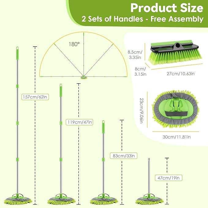 Paquete de 2 Cepillos y Mopa de Microfibra de Mango Largo de 62 Pulgadas para Lavado de Autos, Cepillos Premium