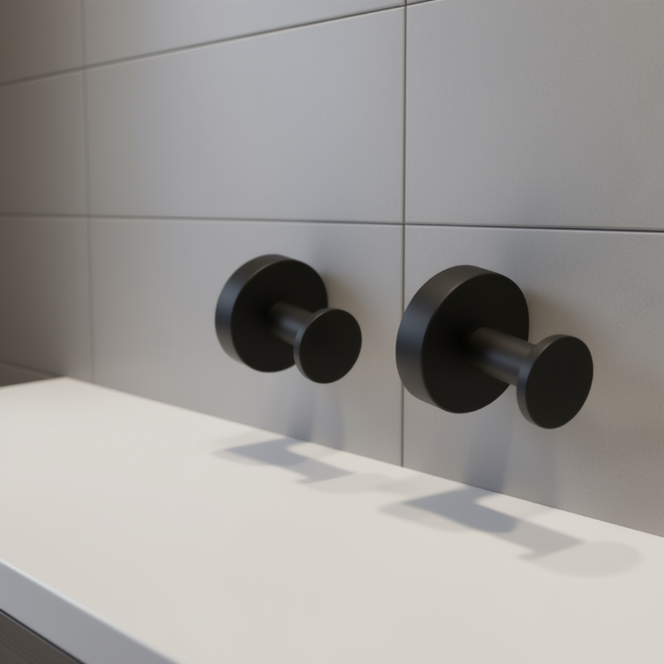 Ganchos para Bata con Base Redonda en Negro Mate, Paquete de 2, para Armario, Baño, Dormitorio, Diseño Minimalista