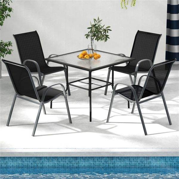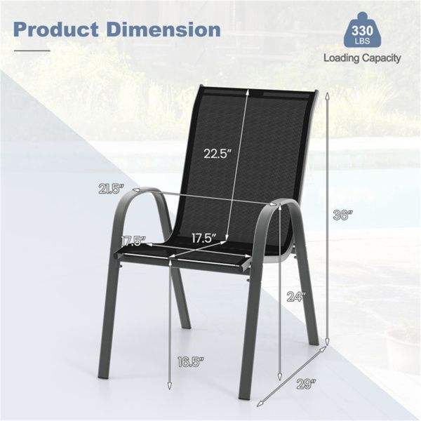 Paquete de 2 Sillas de Comedor Apilables para Patio, Color Negro, Estructura de Acero Ergonómica con Capacidad para 330 Libras, Tela Transpirable para Uso en Exteriores