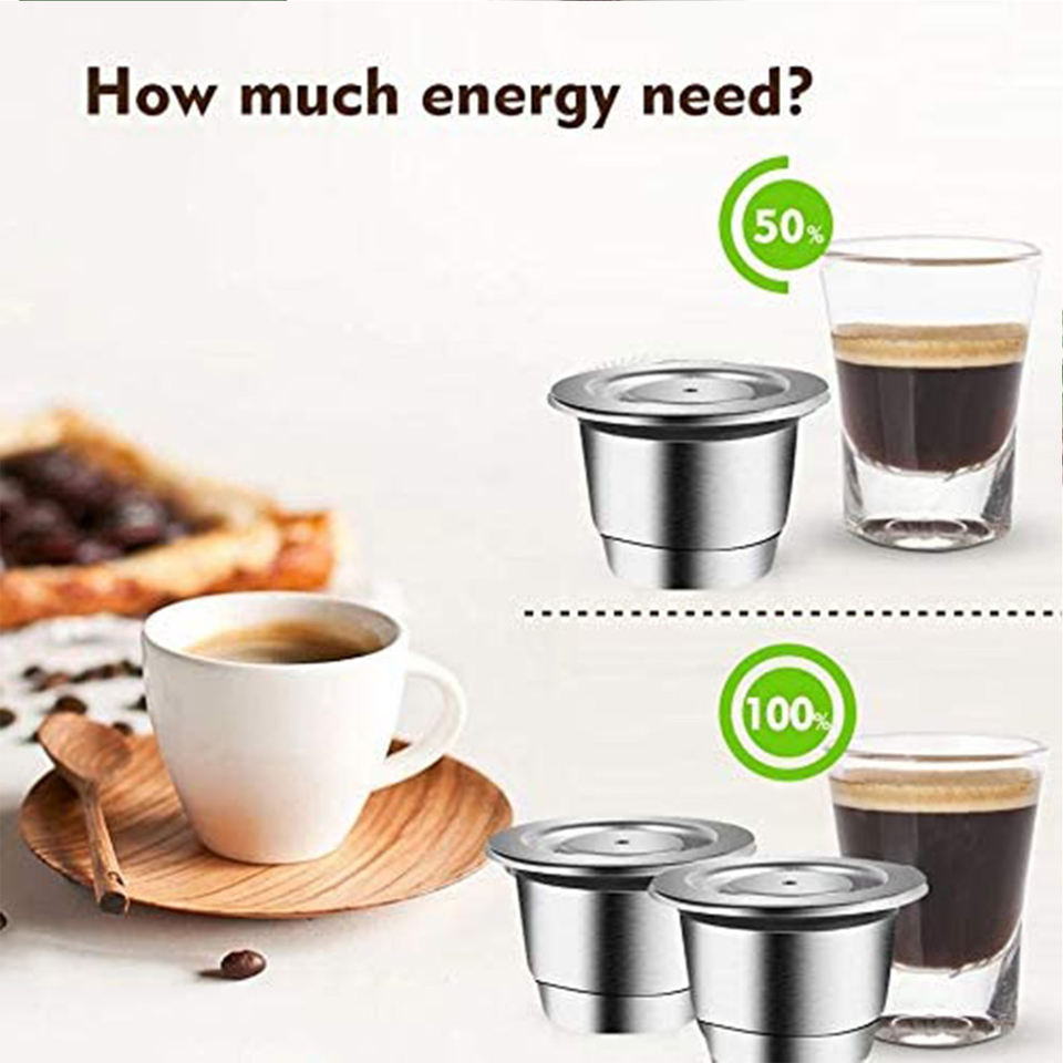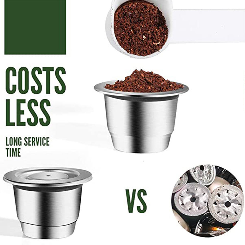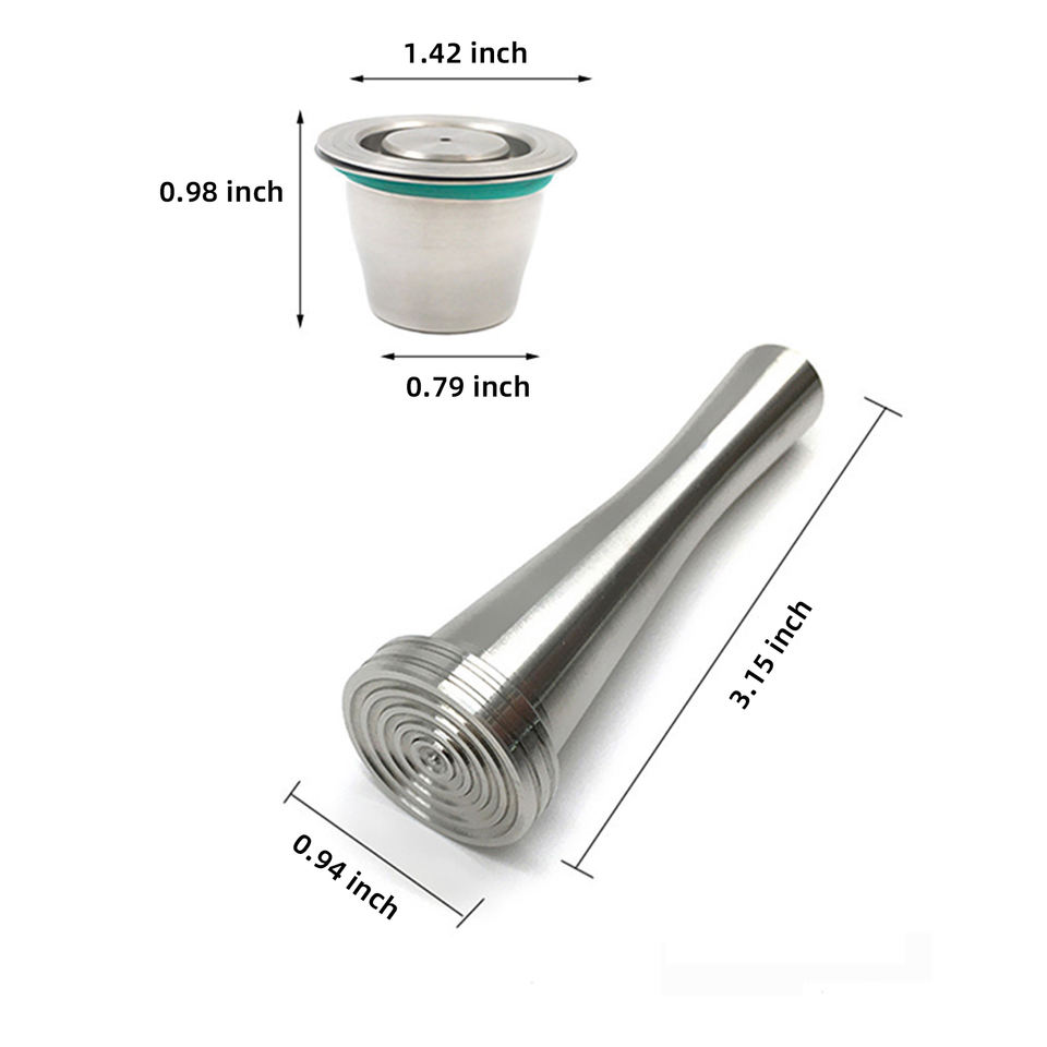 Paquete de 2 Cápsulas de Café Reutilizables de Acero Inoxidable para Nespresso OriginalLine, Incluye Tamper y Cuchara