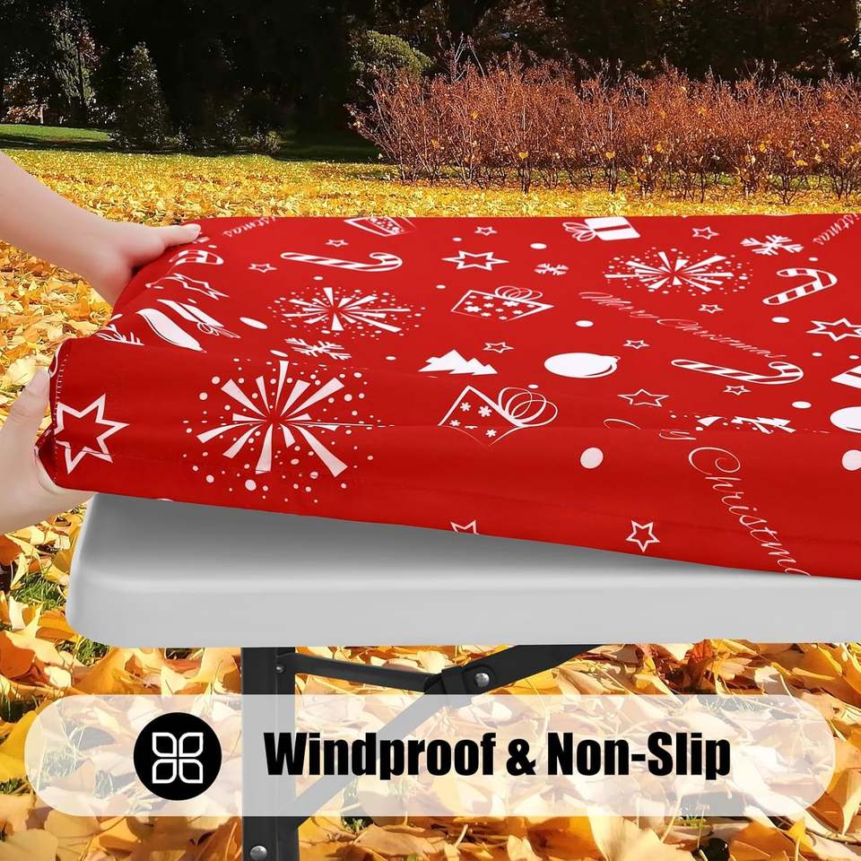 Paquete de 2 Manteles Rectangulares de Poliéster Elástico Impermeable, Cubierta para Mesa de Navidad, Decoración para Mesa de Patio y Fiestas