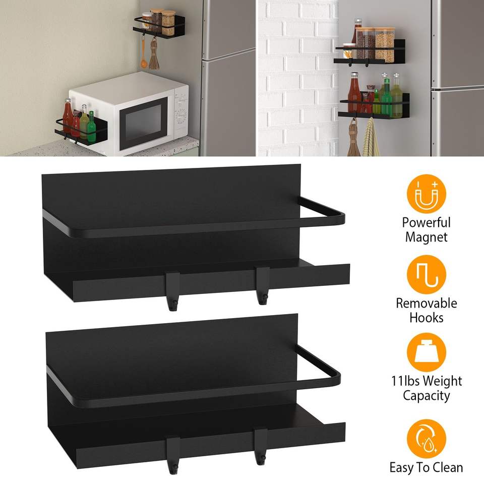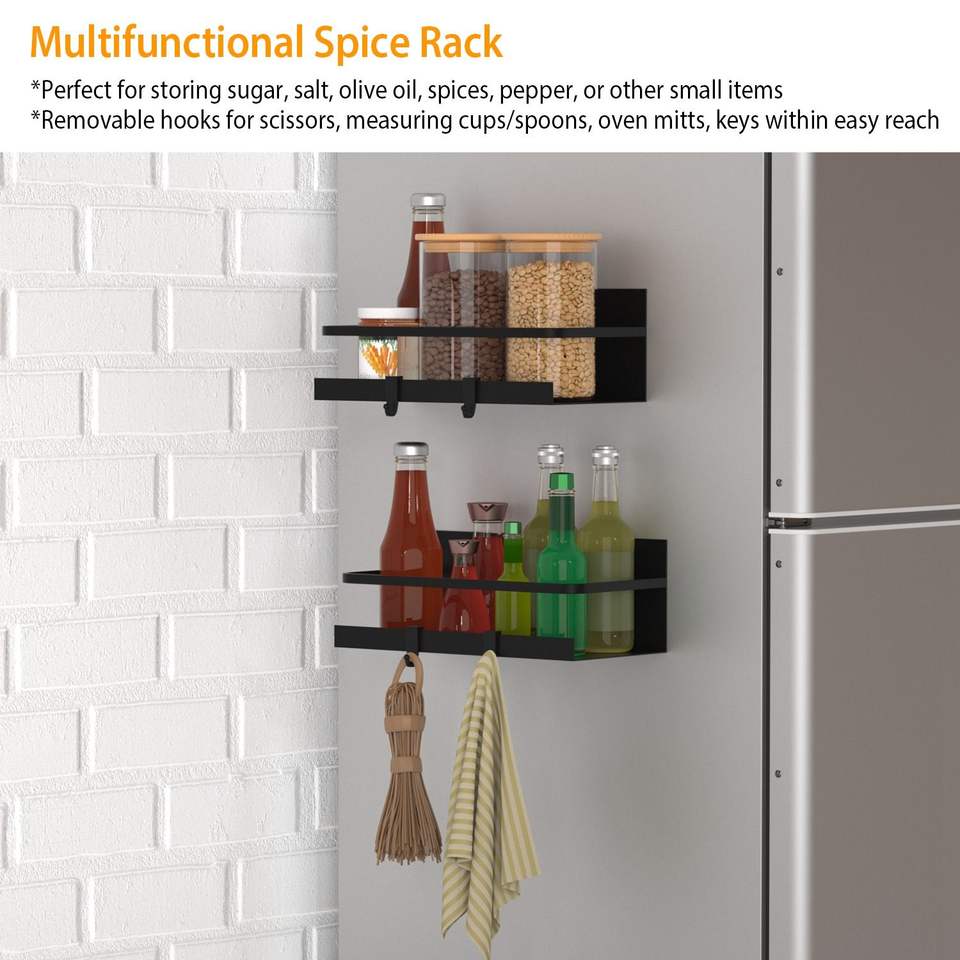 Paquete de 2 Organizadores Magnéticos para Especias, Estante de Almacenamiento de Condimentos con 4 Ganchos Extraíbles para Refrigerador