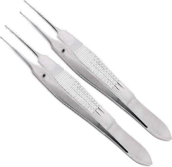 2 Piezas de Pinzas Castroviejo de 4 Pulgadas para Sutura, Acero Inoxidable Quirúrgico, 0.3mm 0.5mm 1x2, Manual, Certificación CE, 1 Año de Garantía, Surgiright