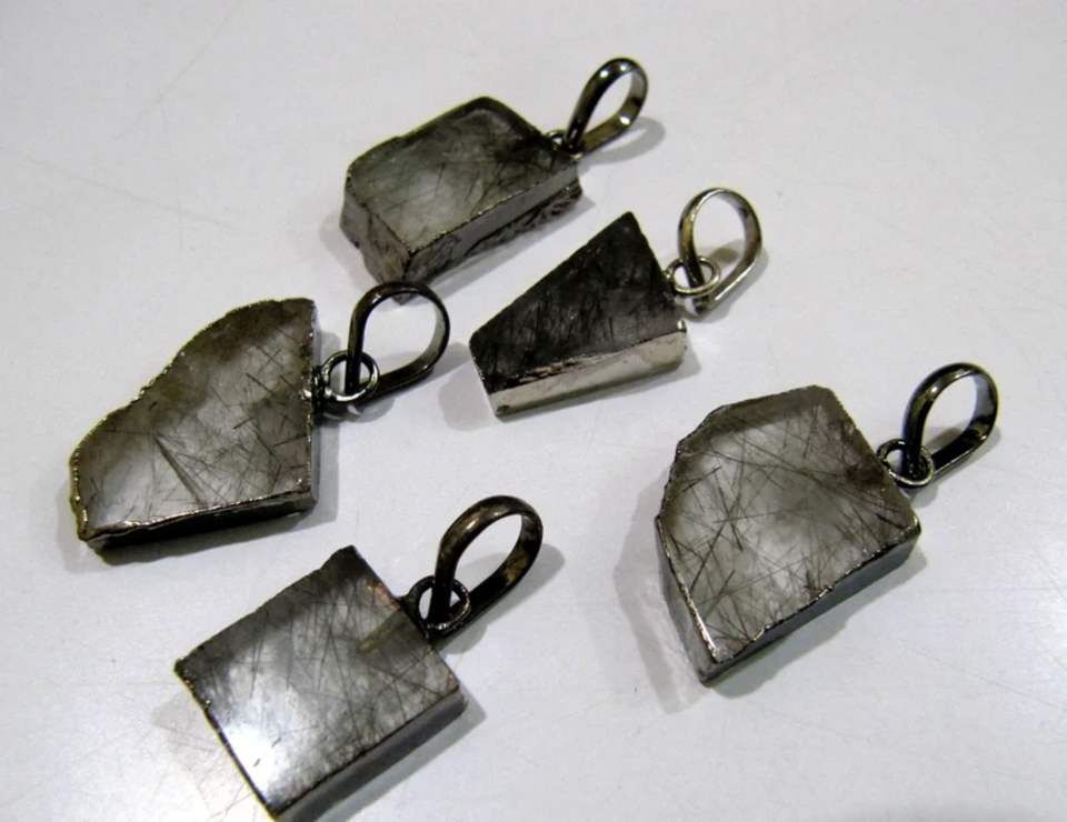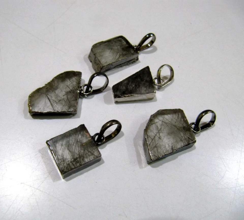 Juego de 2 piezas-Colgante de rebanada rutilada negra natural Encanto de forma libre con borde galvanizado oxidado negro Bucle único 1 pulgada aprox.