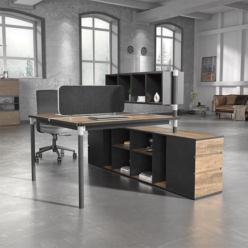 2 Persona lo contrario asiento de almacenamiento compacto abierta estación de trabajo de oficina escritorio con gabinete