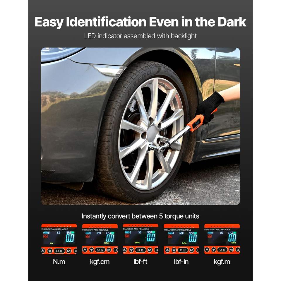 Juego de Llaves Dinamométricas Digitales de 2 Piezas, 72 Dientes, 2% de Alta Precisión, Valor Preestablecido Electrónico, Accionamiento de 1/2 y 3/8 Pulgadas para Reparación de Automóviles