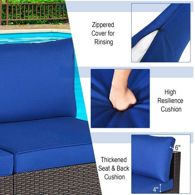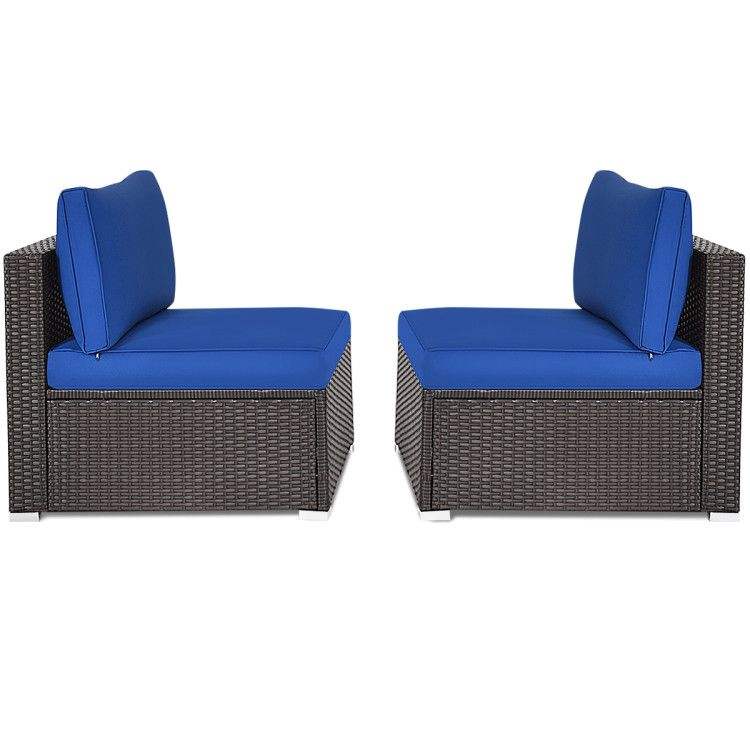 Juego de sofás de ratán sin brazos para jardín y patio, 2 piezas, con 2 cojines y 2 almohadas