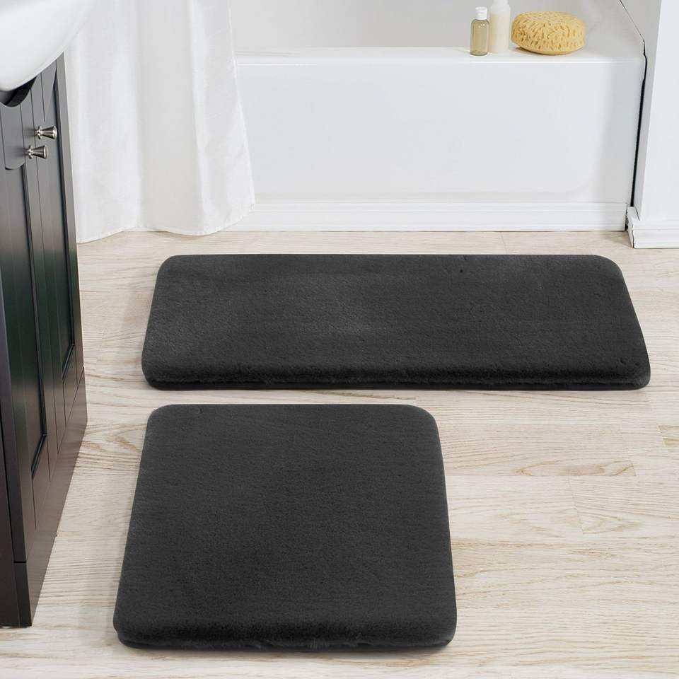 Juego de 2 alfombras de baño de piel de conejo de imitación gris de 17 \ "X 24 \" y 20 \ "X 30 \"-Alfombrillas de baño de primera calidad