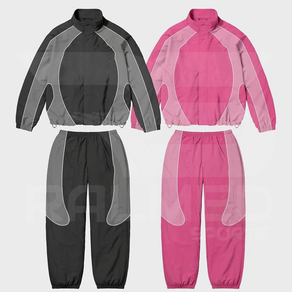 Chaqueta y pantalón con cremallera de 2 piezas, diseño de sublimación de nailon 100%, chándal cortavientos con hombros caídos y peso pesado para hombres