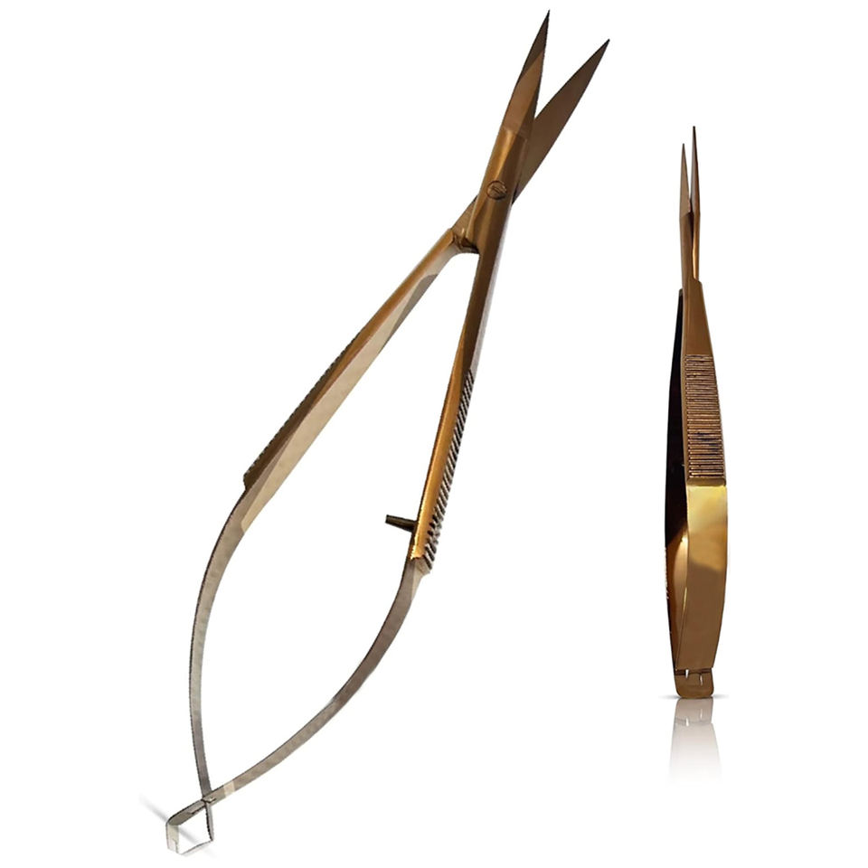 2 Piezas de Tijeras para Cejas de Acero Inoxidable de 4.7 Pulgadas en Color Dorado, con Punta Curva y Mecanismo de Resorte, Tijeras de Belleza