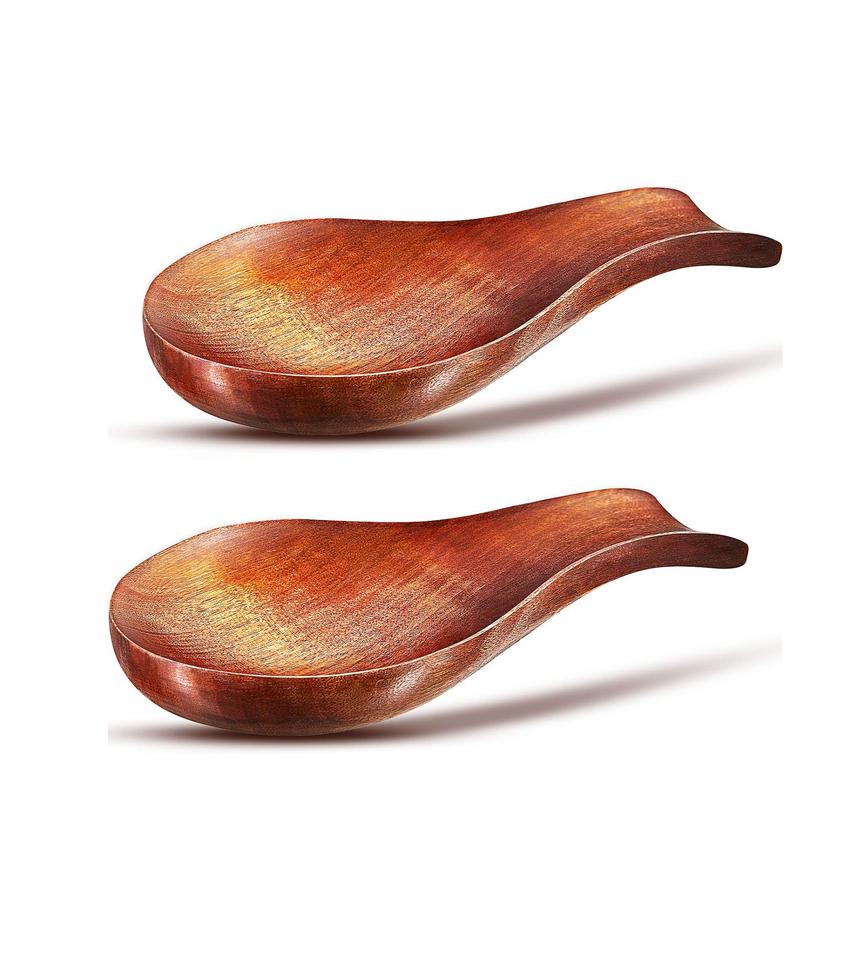 Soporte para cuchara de 2 piezas para estufa, soporte para cuchara superior para mostrador de cocina, soporte rústico con forma de pez de madera para utensilios de espátula de cocina