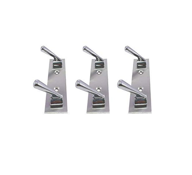 Colgador de ropa de pared moderno de acero inoxidable de 2 pines con doble gancho, resistente, a prueba de óxido, que ahorra espacio, para abrigos y baño.