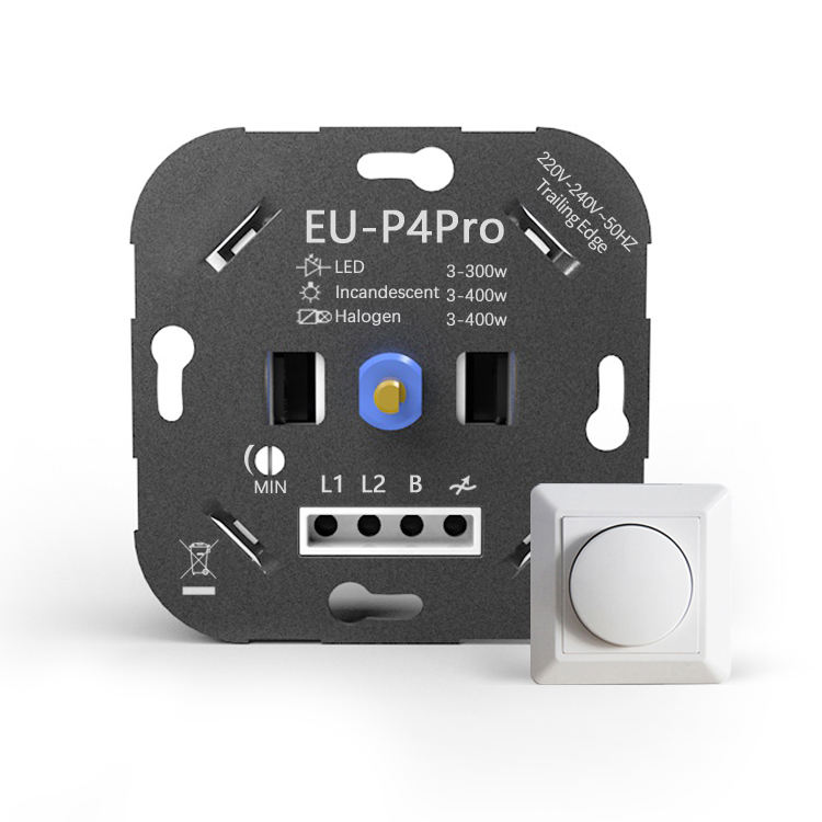 Interruptor de atenuación rotativo 2 Pol, para pared empotrada, 400w, con borde trasero, luz Led táctil, Control remoto de 220v, caja de cartón, interruptor manual