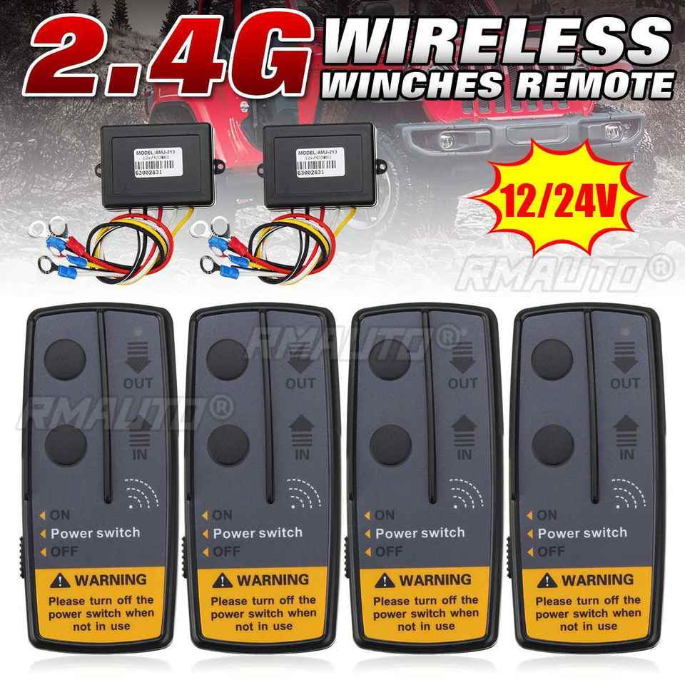 2 Sets de Control Remoto Inalámbrico Digital 2.4G 12V para Cabrestante, Kit de Recuperación con 4 Controles Remotos + 2 Receptores 100FT para Jeep SUV
