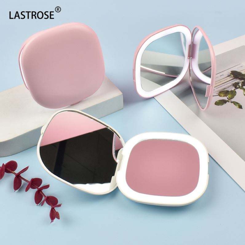 Espejo de Mano con Iluminación LED de 2 Lados, Brillo Ajustable, Carga USB, Diseño Plegable y Portátil para Pinzas de Pestañas