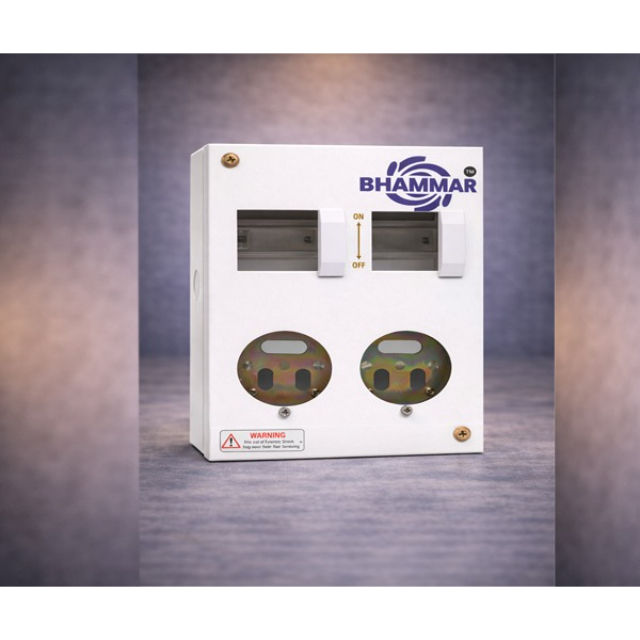 Caja de Distribución Industrial de 2 Tomas + 2 DP MCB 20/2A, Carcasa Metálica Modelo KK49, Interior/Exterior, Proveedor a Granel en India OMDMS