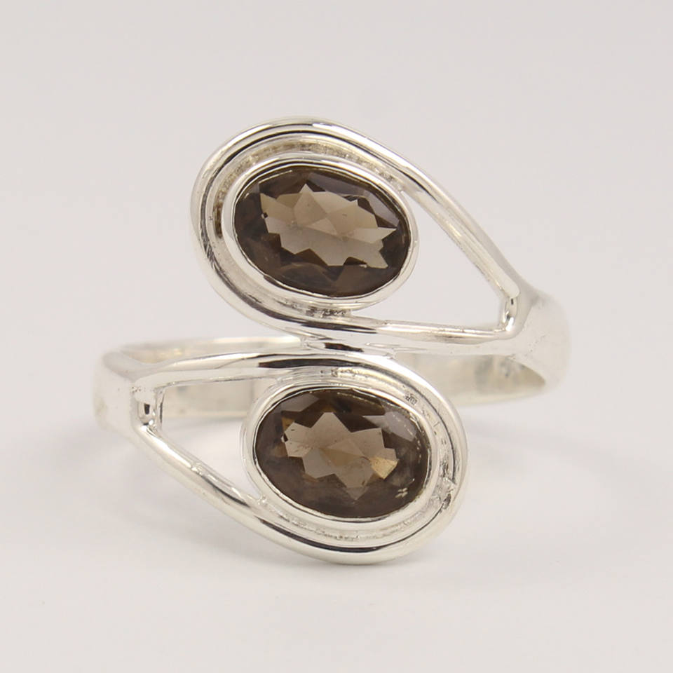 Anillo de joyería hecho a mano, todos los tamaños, cuarzo ahumado, 5 a 10 gemas, anillos de plata de ley 925, joyería, 2 piedras, marrón, tamaños de EE. UU., moda