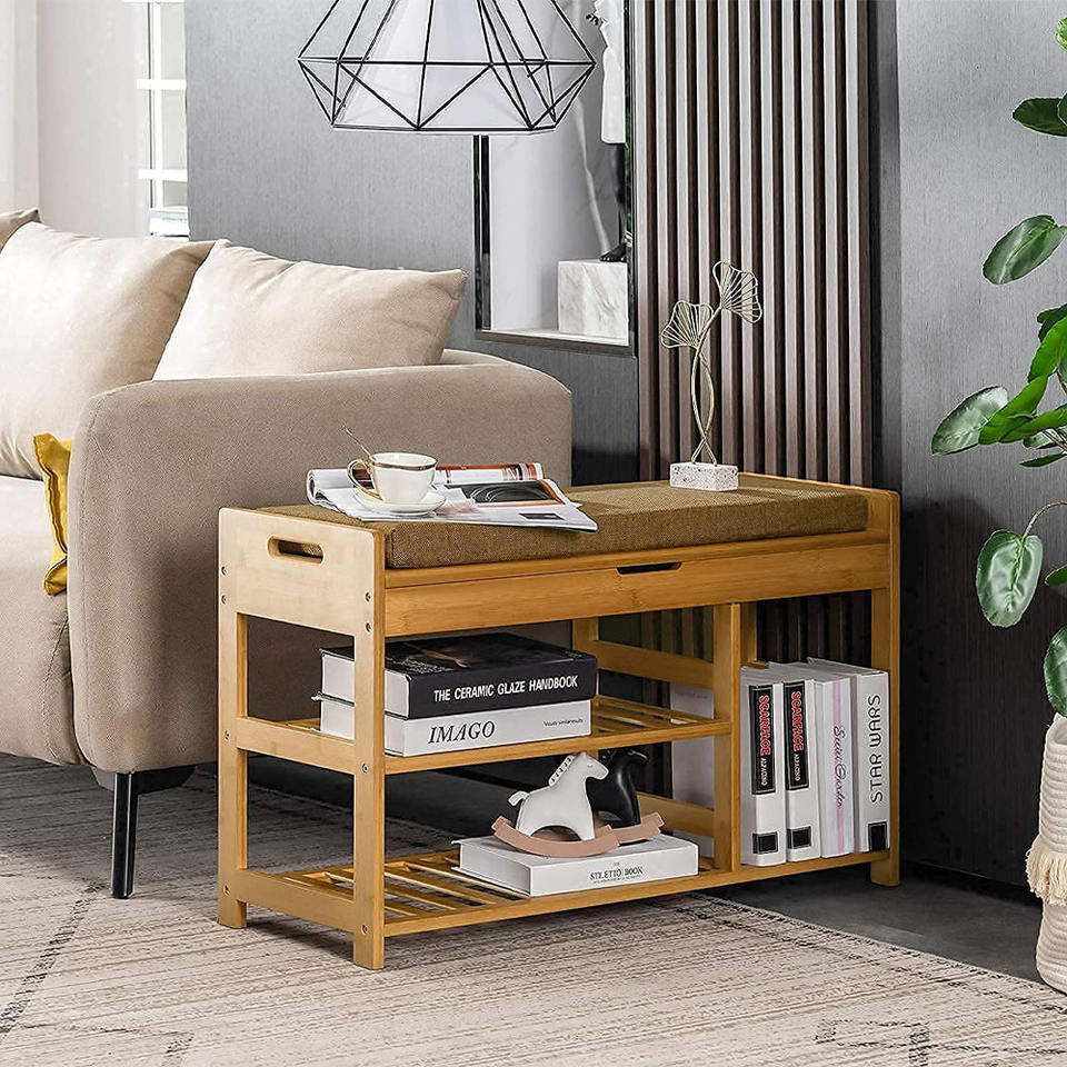 Caja de almacenamiento de elevación de 2 niveles, Banco de entrada, Zapatero de bambú, gerente