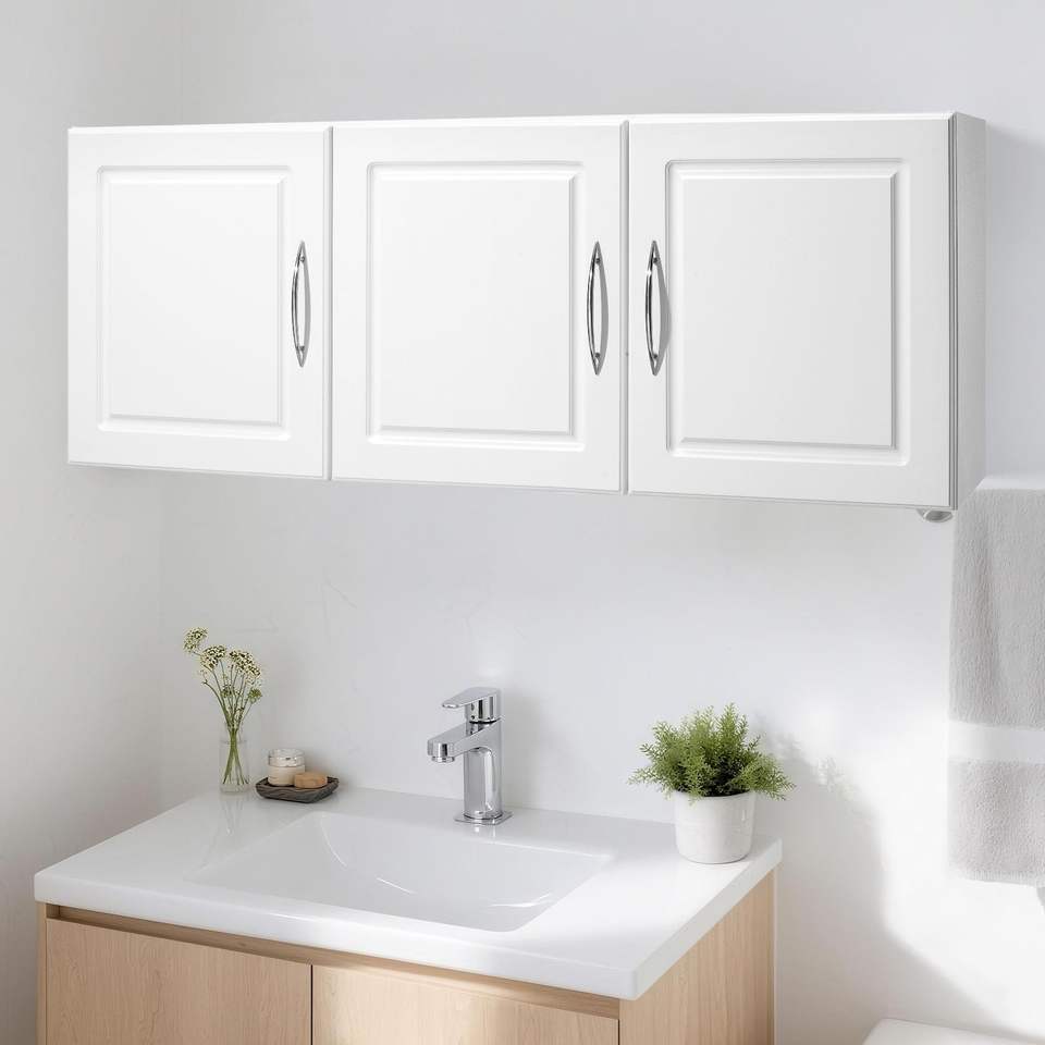 Estante Ajustable de 2 Niveles, Armario Colgante de Pared para Lavandería con 3 Puertas, Almacenamiento de Pared para Cocina