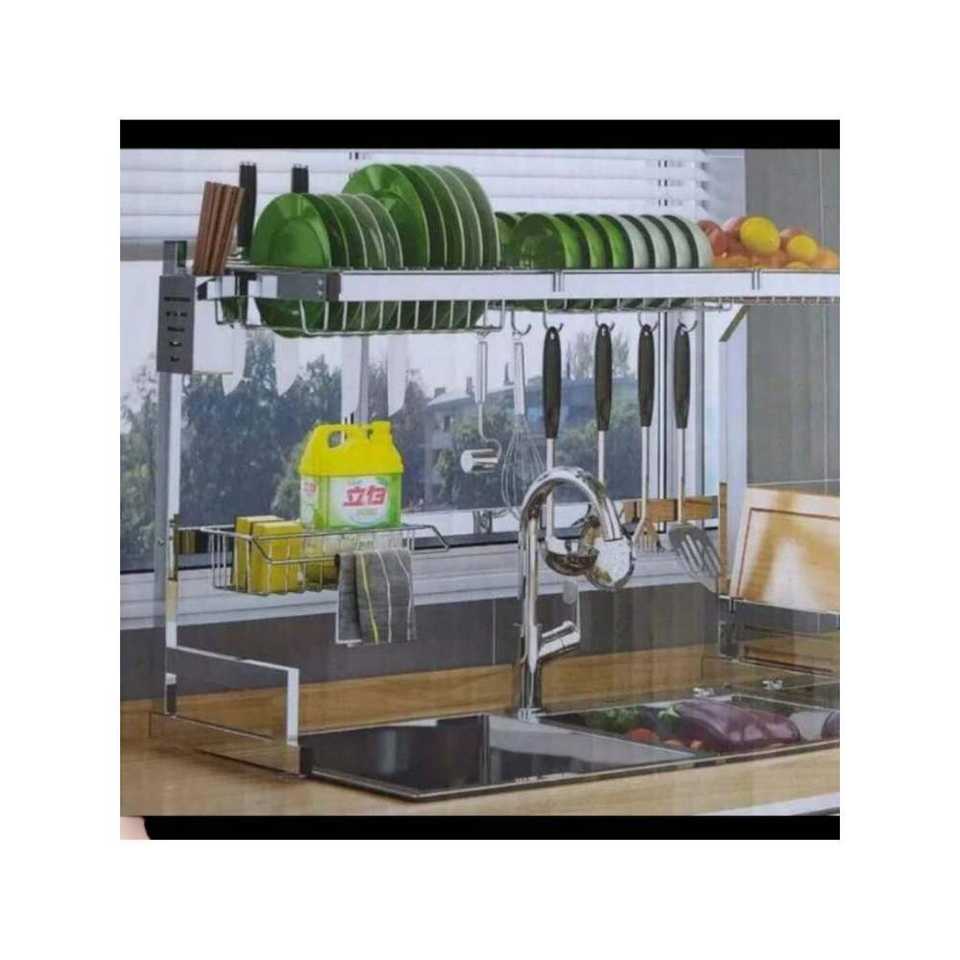 Fregadero ajustable de 2 niveles, utensilio escurridor de platos fácil de usar y conveniente para almacenar platos de cocina
