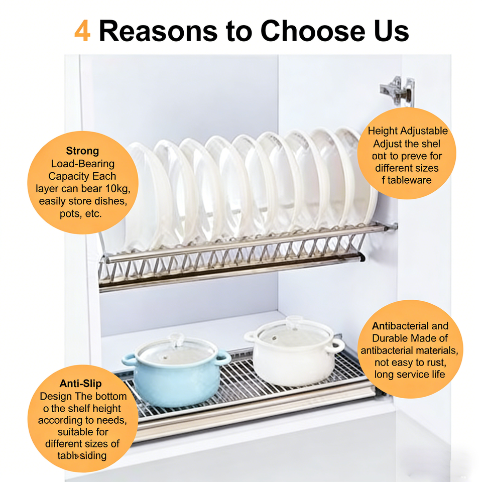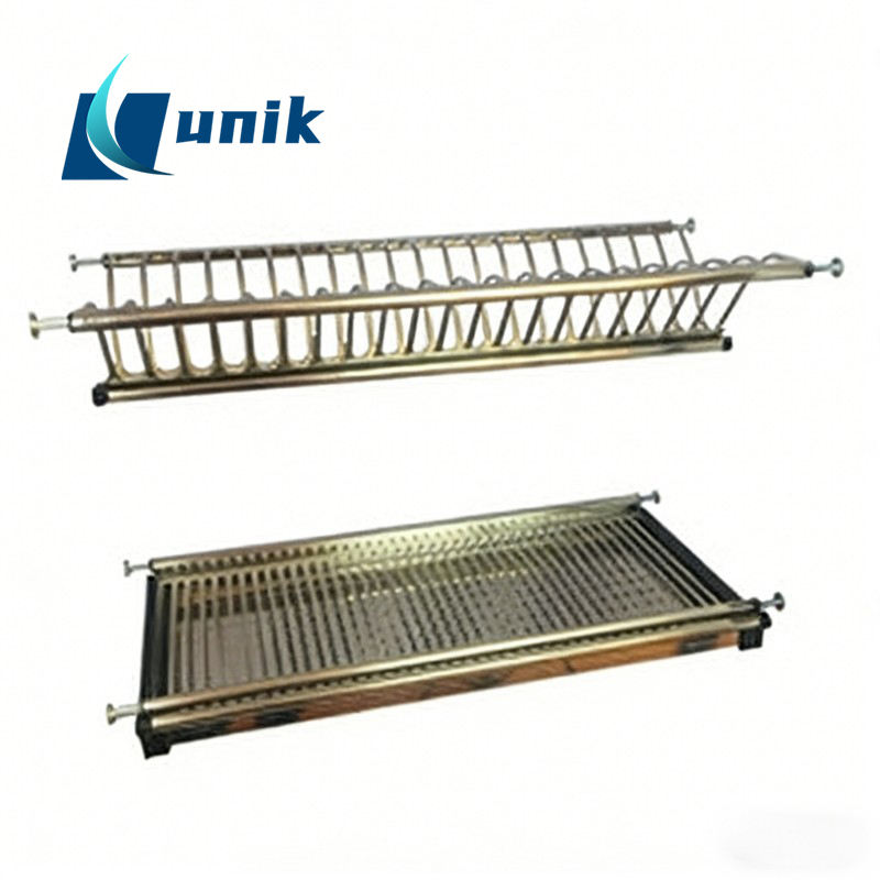 UNIK FY3185 Escurridor de Platos de 2 Niveles Ajustable de Acero Inoxidable con Ruedas, Tipo Cubierta Cromada/Color Personalizado para Gabinete de Cocina